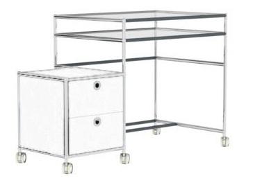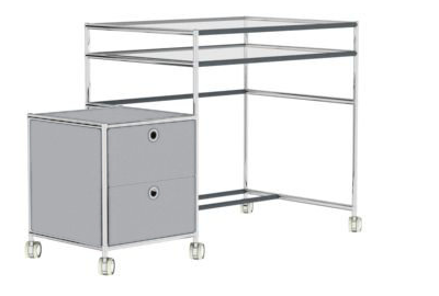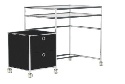 Bürotisch System4, Glas-Arbeitsfläche, Korpus mit Schubladen