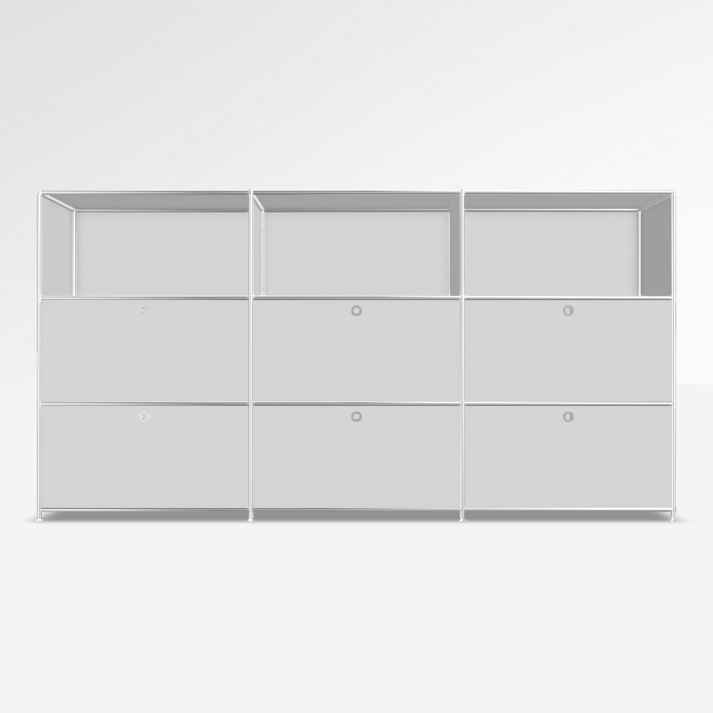 Highboard System4 in Weiss. 6 x Klappe unten, 3 x Offenes Element.