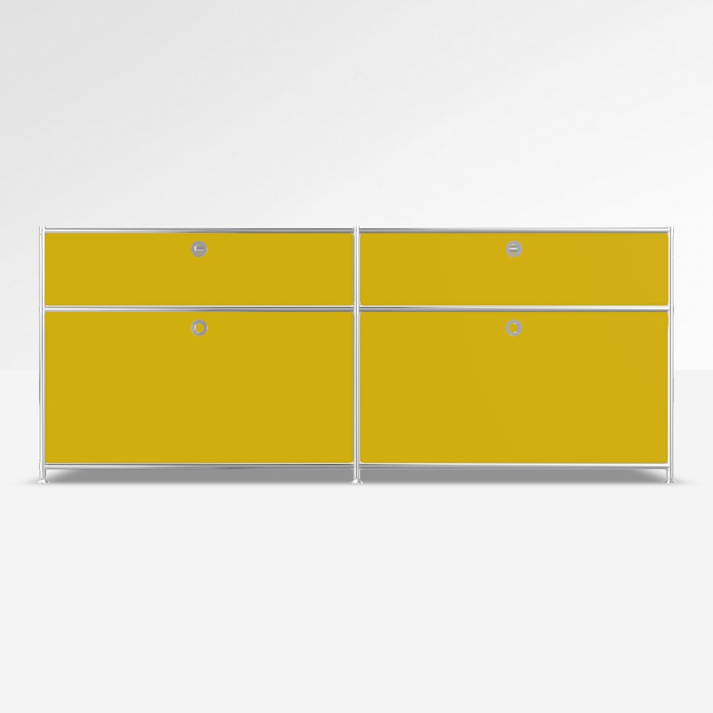 Sideboard System4 in Gelb. 2 x Klappe unten, 2 x Schublade.