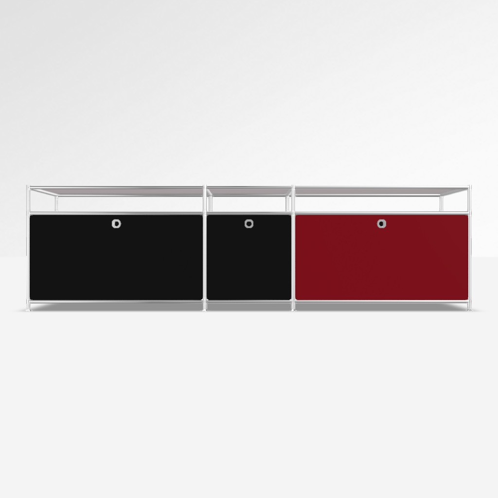 Sideboard System4 in mehreren Farben. 3 x Klappe unten, 3 x Offenes Element.