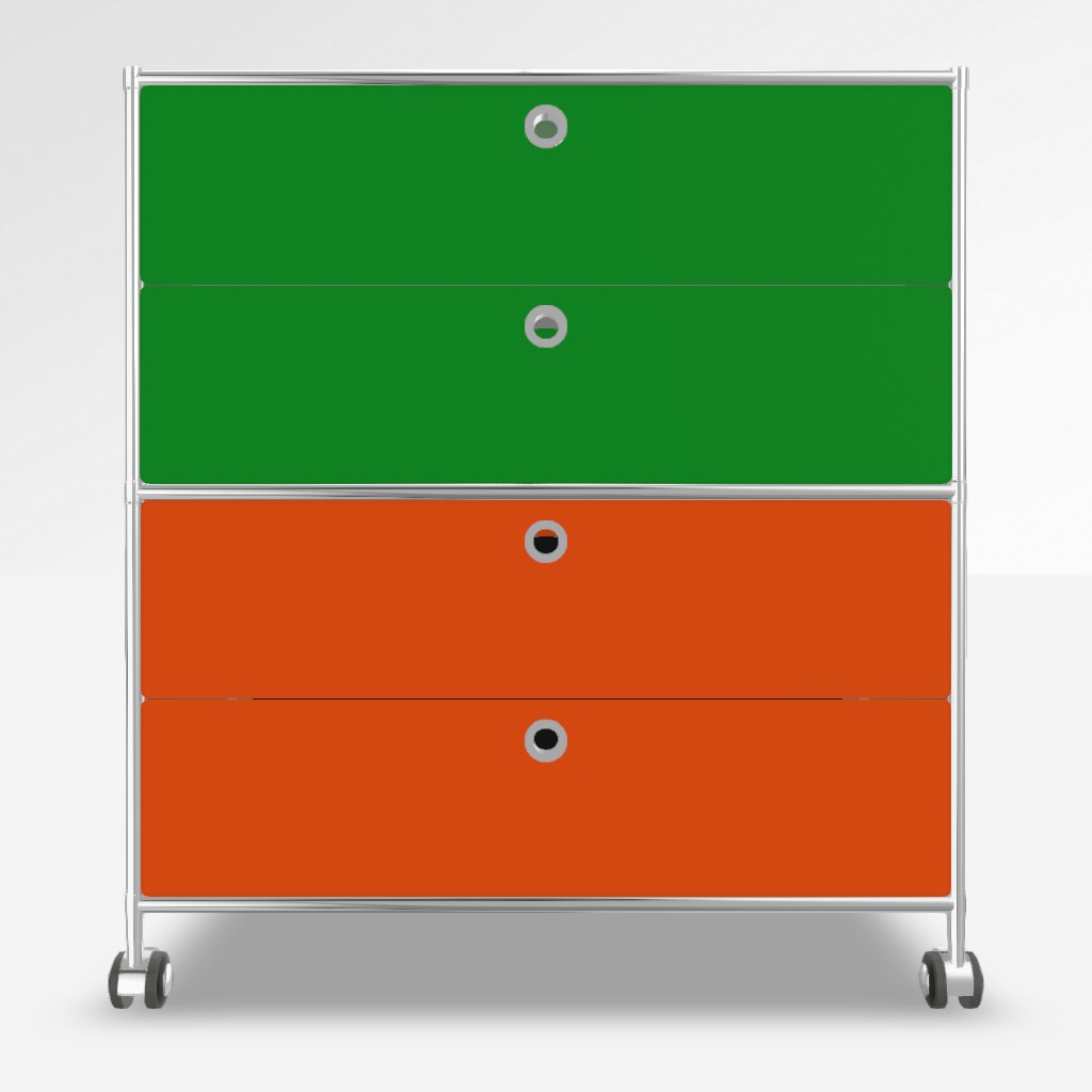 Sideboard System4 in mehreren Farben. Mit Rollen, 2 x Doppelschublade.