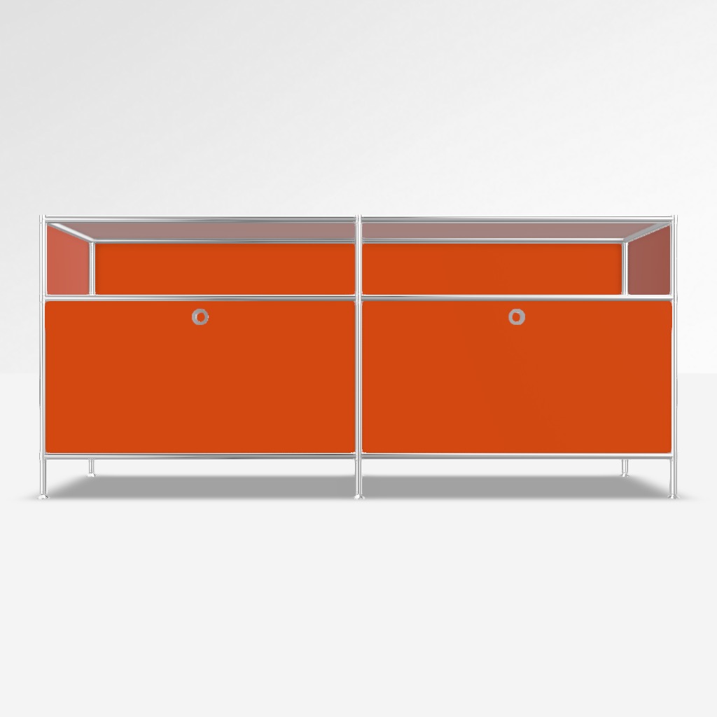 Sideboard System4 in Orange. 2 x Klappe unten, 2 x Offenes Element.