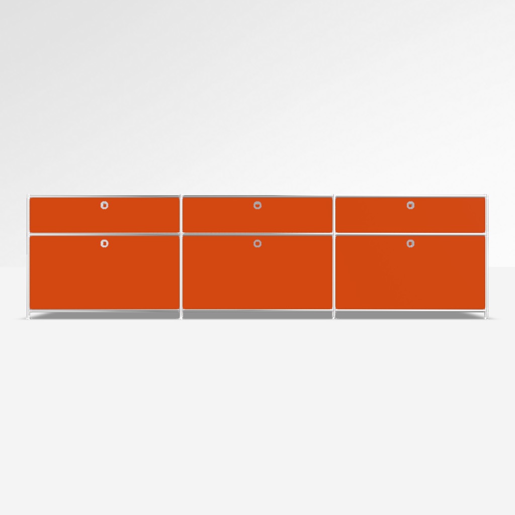 Sideboard System4 in Orange. 3 x Klappe unten, 3 x Schublade.