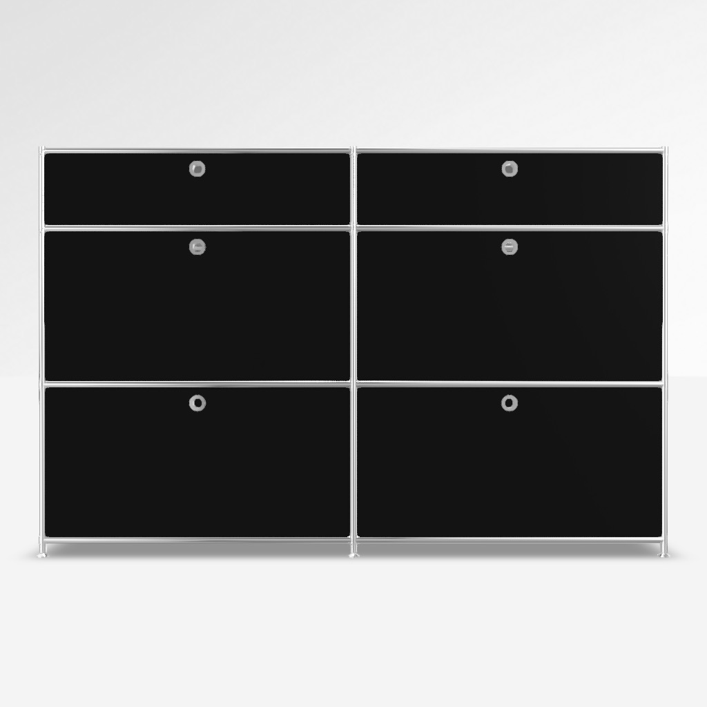 Sideboard System4 in Schwarz. 4 x Klappe unten, 2 x Schublade.