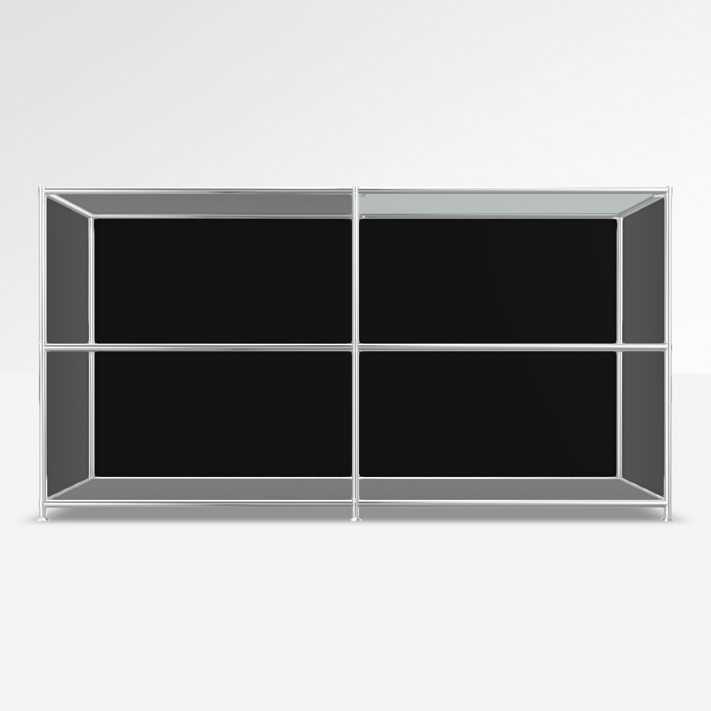 Sideboard System4 in Schwarz, mit Glas Satiniert. 4 x Offenes Element.