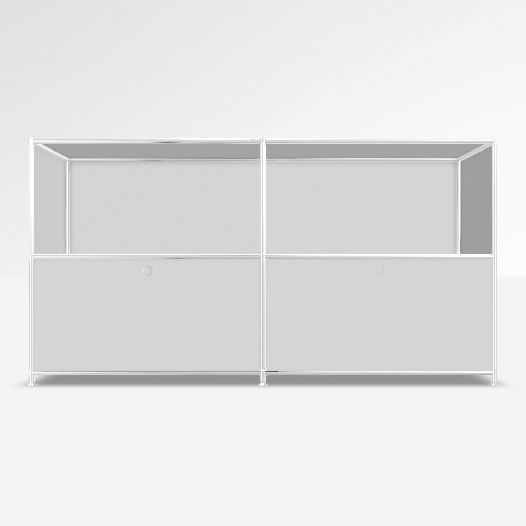 Sideboard System4 in Weiss. 2 x Klappe unten, 2 x Offenes Element.