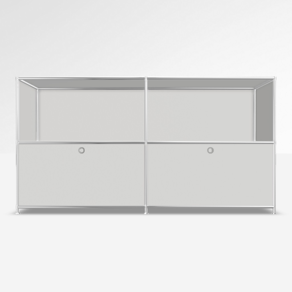 Sideboard System4 in Weiss. 2 x Klappe unten, 2 x Offenes Element.